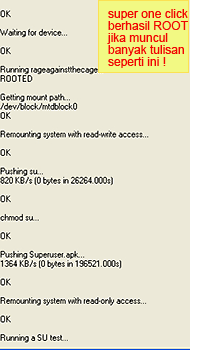 Jalankan SuperOneClick dan berdoalah dalam hati supaya tidak terjadi hal-hal yang tidak kita inginkan. Lalu klik ROOT ! Jika berhasil, maka akan muncul pertanyaan pertama: Apakah anda ingin menginstall SuperUser ? Klik Ya, dan proses akan berlanjut. Kemudian muncul pertanyaan kedua: Apakah anda mau mentest ponsel anda karena sudah sukses di-ROOT ? Klik Ya dan di ponsel anda akan berbunyi dan muncul pertanyaan yang saya lupa....he....he...he... Kan gak penting, jadi ngapain diingat-ingat !